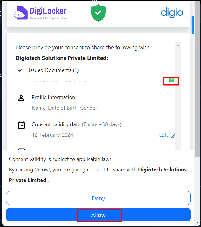 * Clicking on the "**Create Projec**t" button will redirect you to the KYC request generation page. Enter your Aadhaar Number and click "Next."