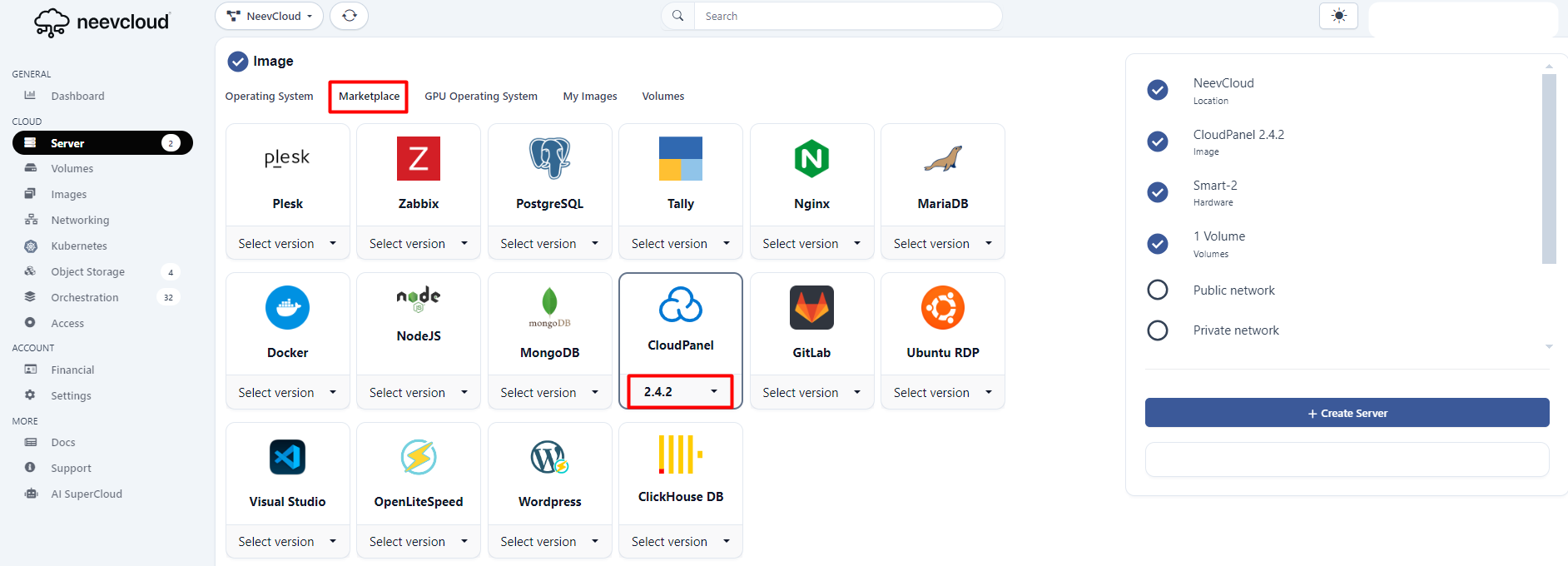 # Create a CloudPanel Instance from the Neevcloud Marketplace