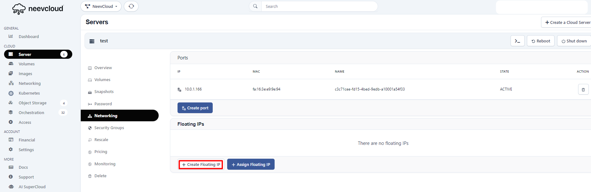 Now click on the Create floating IP.