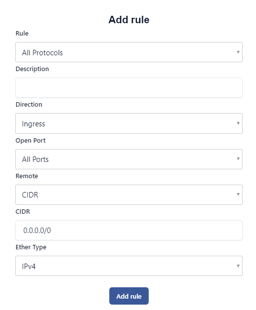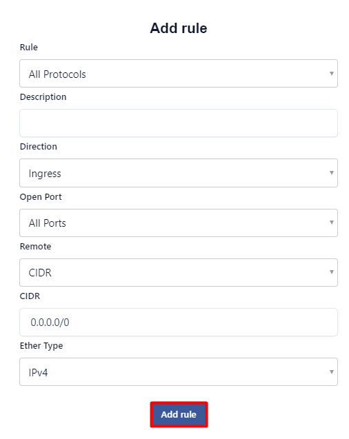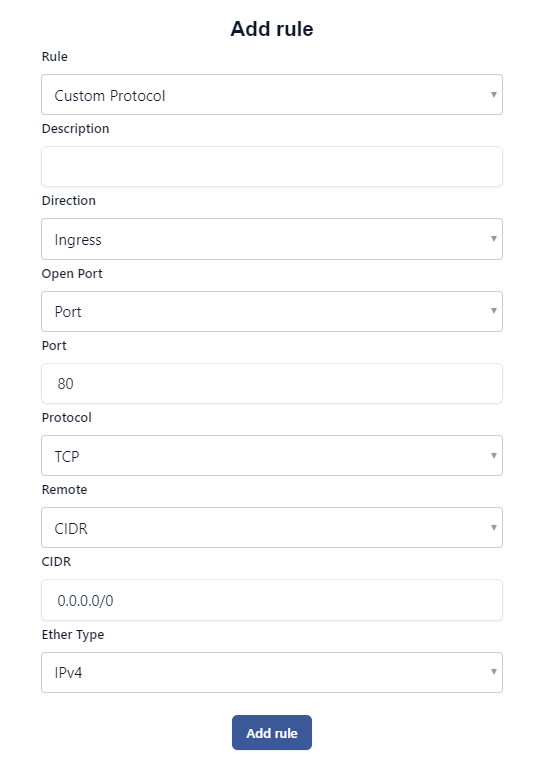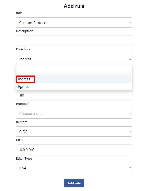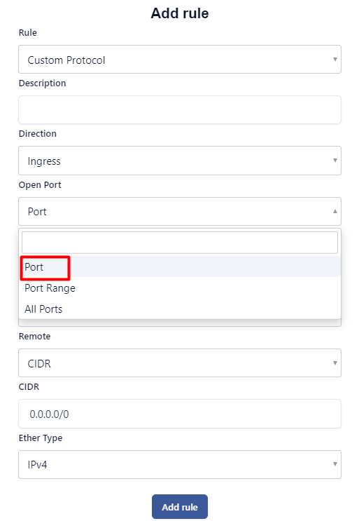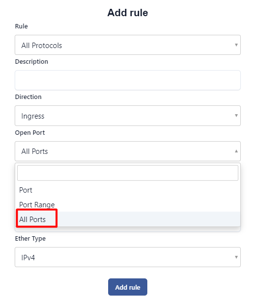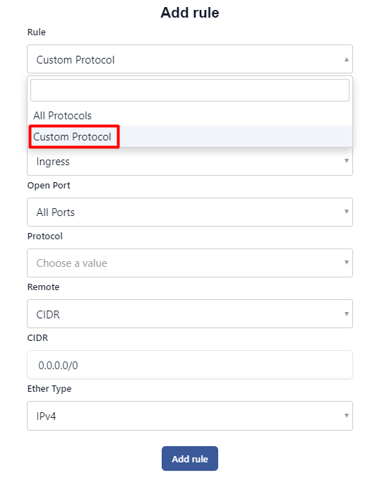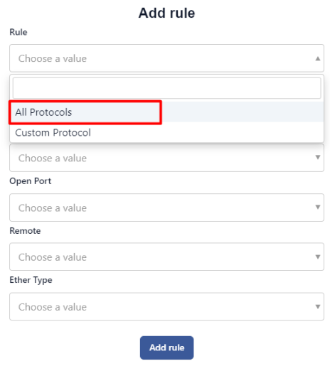 **There are two processes to add rules: All Protocol and Custom Protocol**