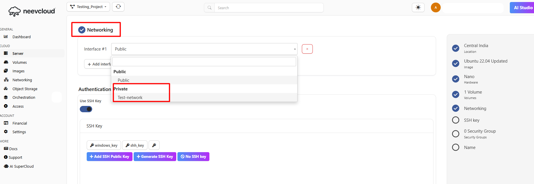 Now, back to the neevcloud dashboard and click on the server section to create a cloud server