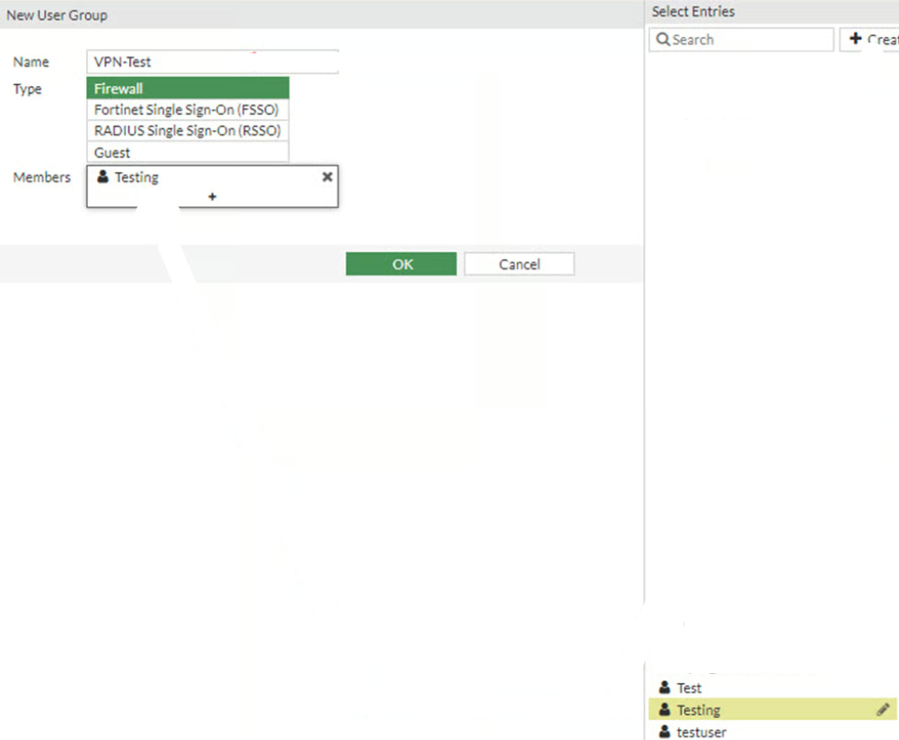 4. **User Group:** Under User Group, select the user group that includes the user created earlier.