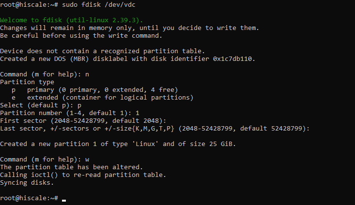 sudo fdisk /dev/vdc