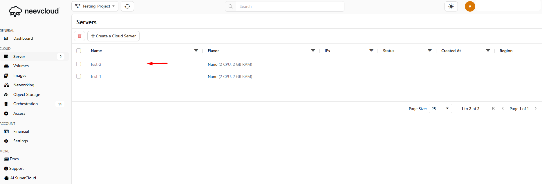 I have now deleted the test-2 server and attached its volume to another server.